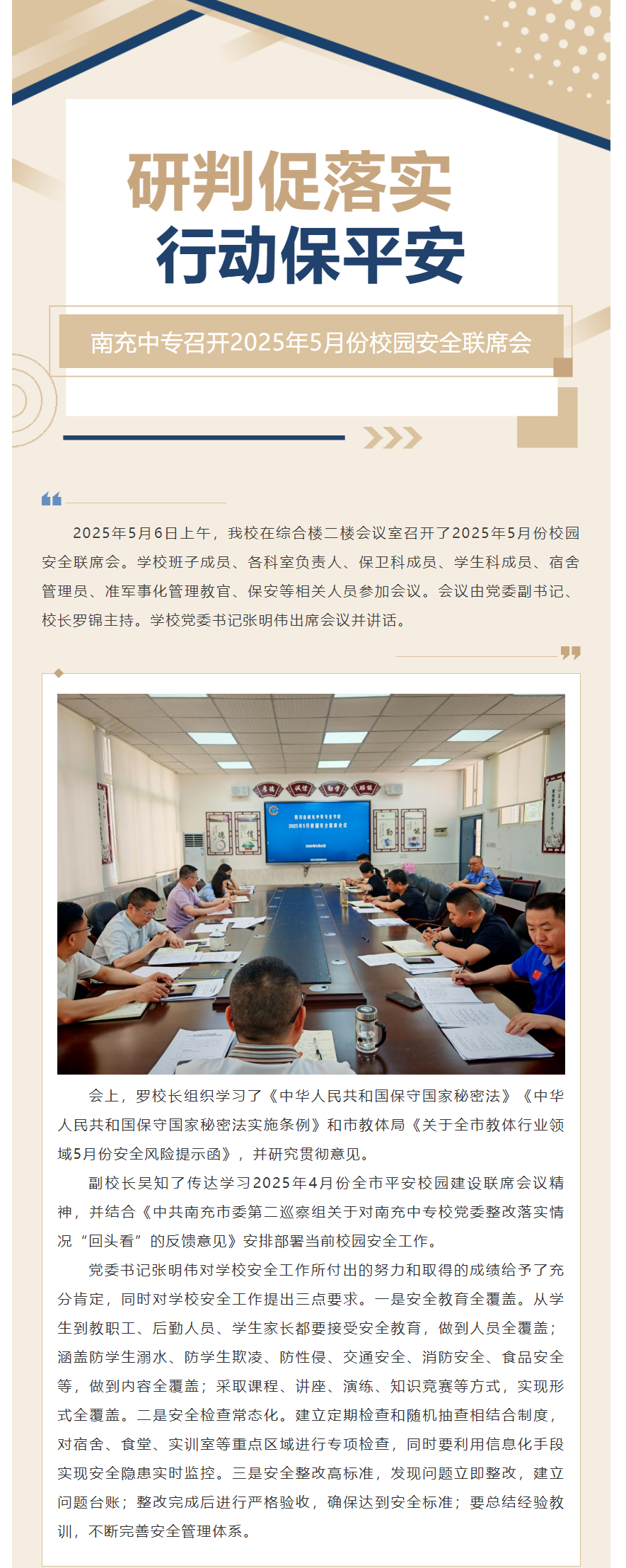 研判促落實 行動保平安——南充中專召開2025年5月份校園安全聯(lián)席會