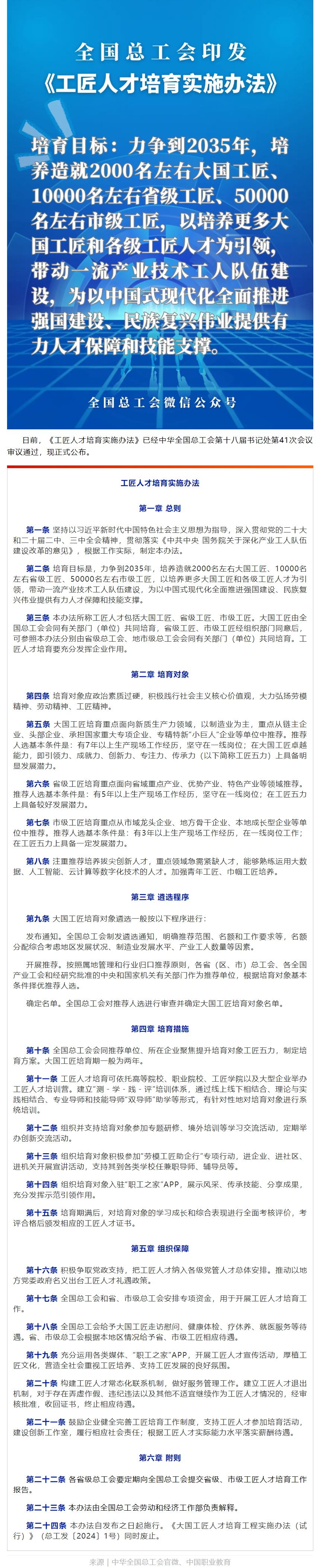 全國總工會印發(fā)《工匠人才培育實施辦法》