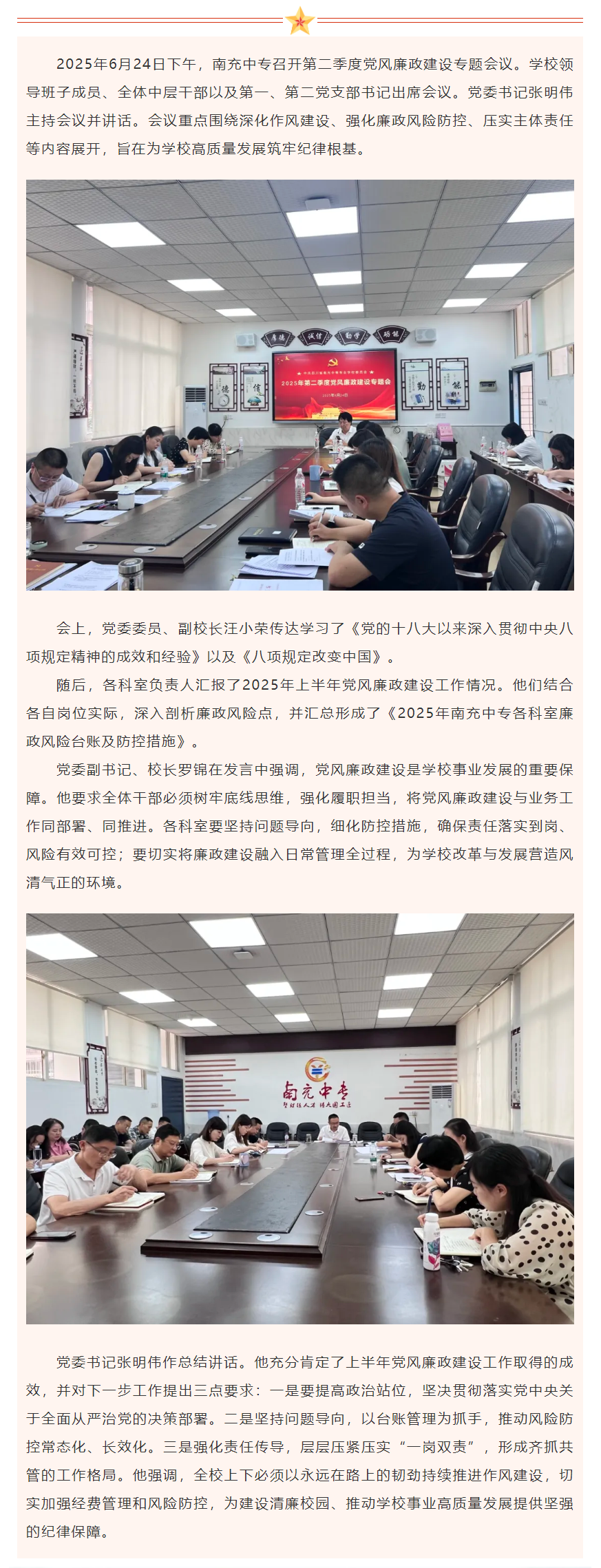 南充中專召開2025年第二季度黨風(fēng)廉政建設(shè)專題會(huì)